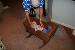 We got the family cradle out of the attic for Justin and Katie to use when little bit arrives. Wouldn't you know our BIG bit had to climb back in. I am pretty sure my parents have a picture of me doing the same thing when I was Crosby's age! I need to get my hands on that...