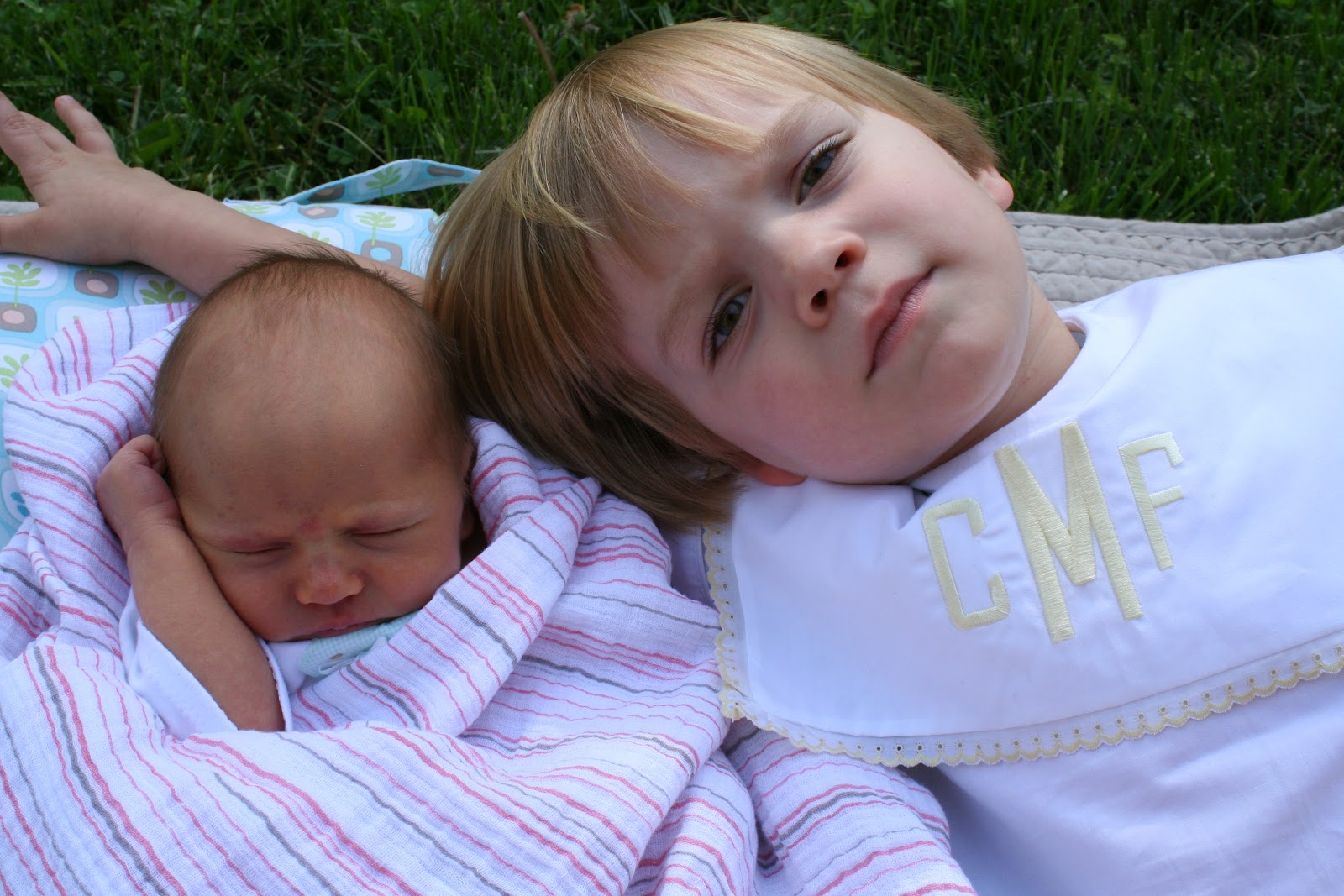 So we survived the first week with 2 kiddos! Jane Claire just seems to eat and sleep at this point. She can sleep anywhere and with anything going on the the background! I am sure that won't last too much longer. Crosby has been a GREAT big brother. His favorite part of his little sister is her "soft hair"! He wants to rub her on top of her head all the time! So cute. I have enjoyed having Blake home since she was born but he headed in to work for a few hours today. We survived that, too! (with a little help from friends!) He is off tomorrow (usually is) but will be back to his regular schedule on Wednesday. Sigh... I guess I better figure out this mom of 2 business pretty quick!!!